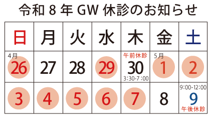 - NEW令和8年ゴールデンウィーク休診のお知らせを掲載しました。